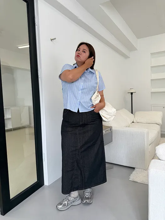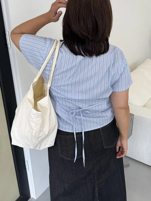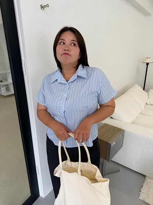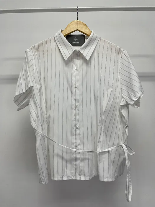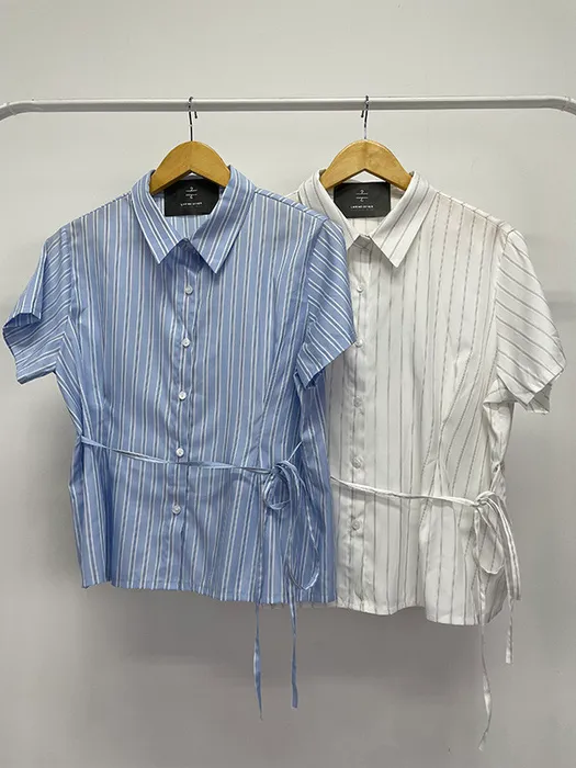 [ 在台現貨 ] #S29[1.2 Size]時髦俐落的短袖抓腰條紋襯衫