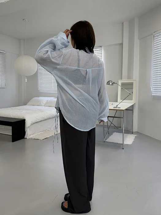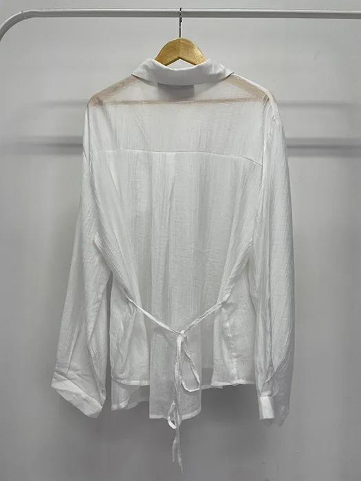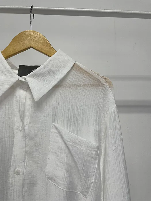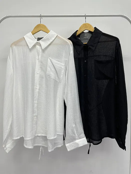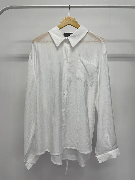 [ 在台現貨 ] #S32[FREE]單口袋天絲薄透綁帶襯衫