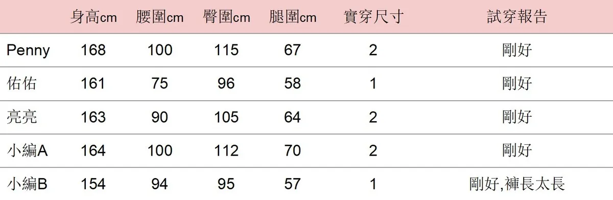 | 尺寸(cm) | 腰圍 | 臀圍 | 大腿圍 | 褲管圍 | 前褲襠 | 後褲襠 | 總長 |