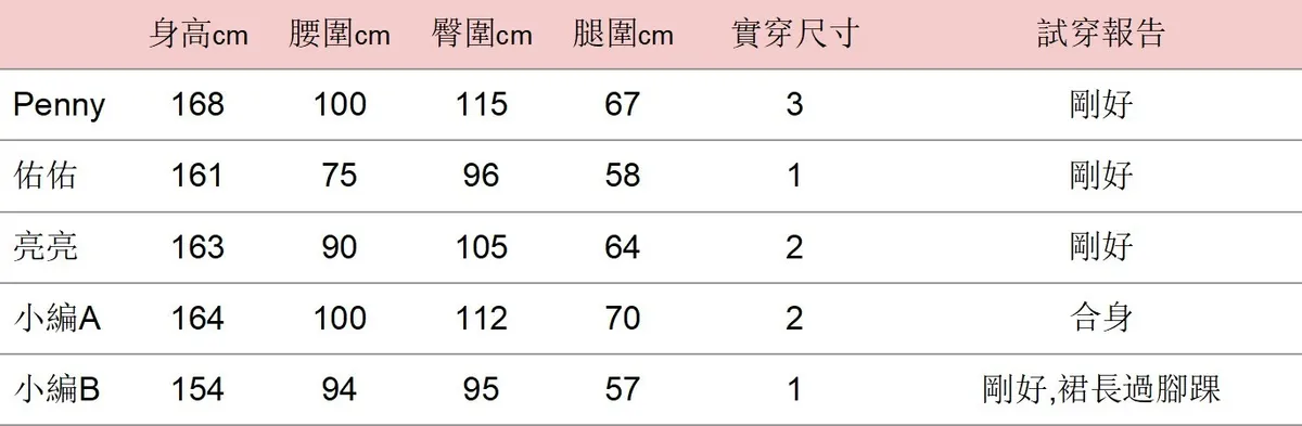 | 尺寸(cm) | 腰圍 | 臀圍 | 下擺圍 | 總長 |