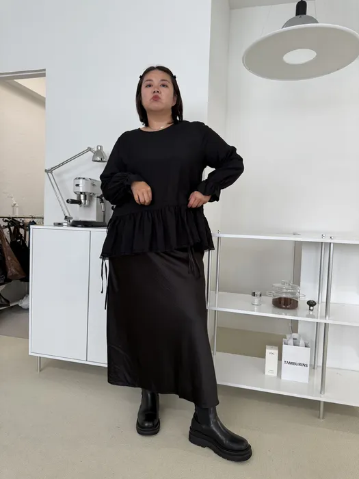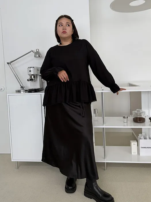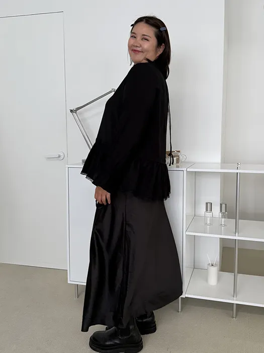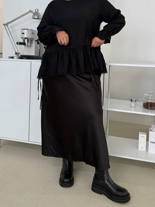 [ 在台現貨 ] #S42[1.2.3 Size]A字光澤感絲質長裙(後側鬆緊褲頭)