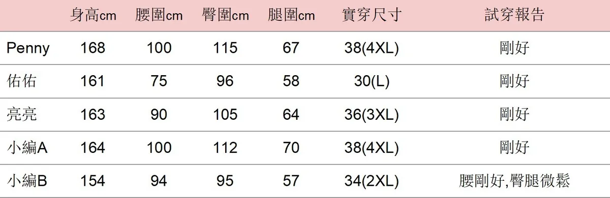 | 尺寸(cm) | 腰圍 | 臀圍 | 大腿圍 | 褲管圍 | 前褲襠 | 後褲襠 | 總長 |