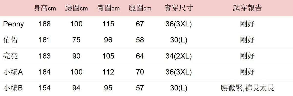 | 尺寸(cm) | 腰圍 | 臀圍 | 大腿圍 | 褲管圍 | 前褲襠 | 後褲檔 | 總長 |