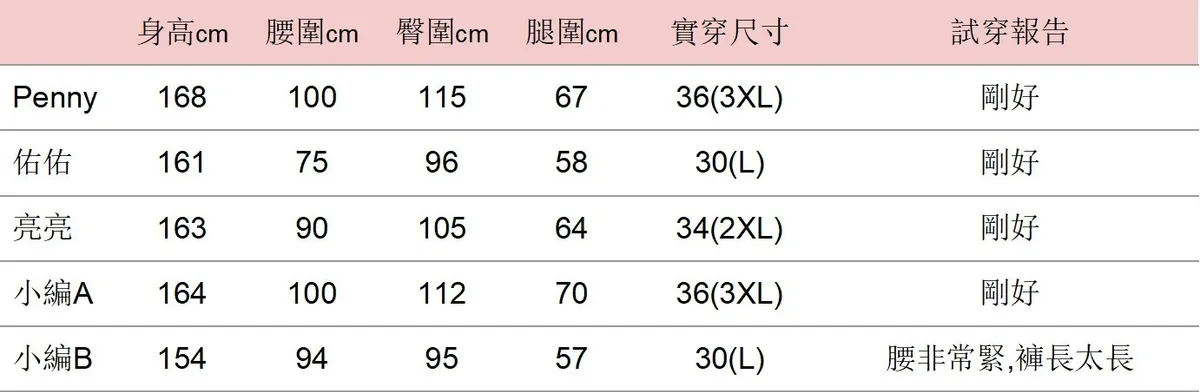 | 尺寸(cm) | 腰圍 | 臀圍 | 大腿圍 | 褲管圍 | 前褲襠 | 後褲檔 | 總長 |
