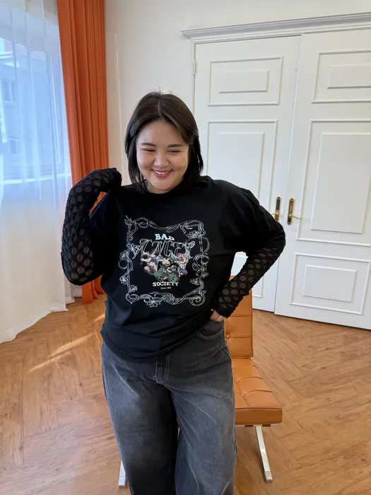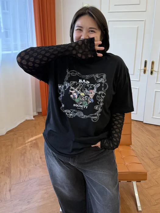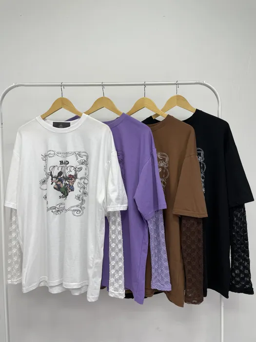 [ 在台現貨 ] #O01[FREE]內搭蕾絲假兩件寬版T(APM)