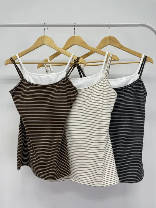 [ 在台現貨 ] #O43[1.2 Size]假兩件條紋超彈貼身bra背心