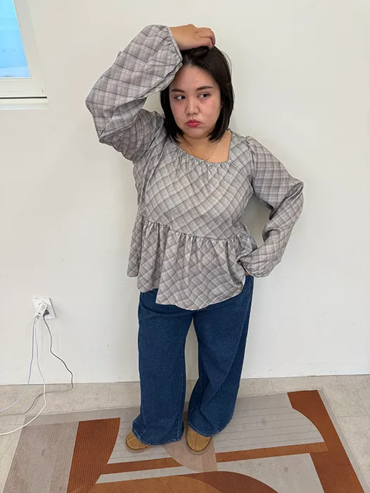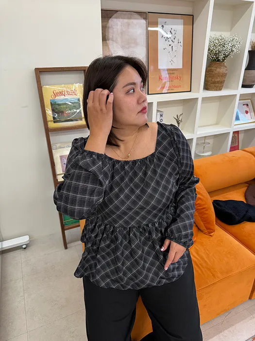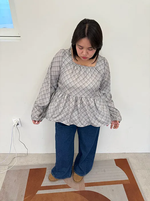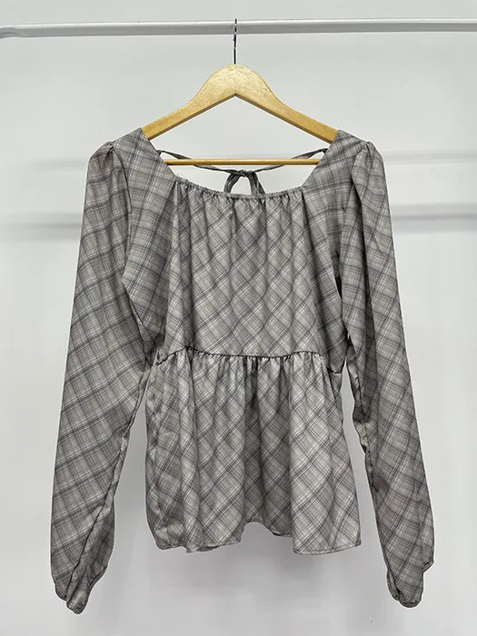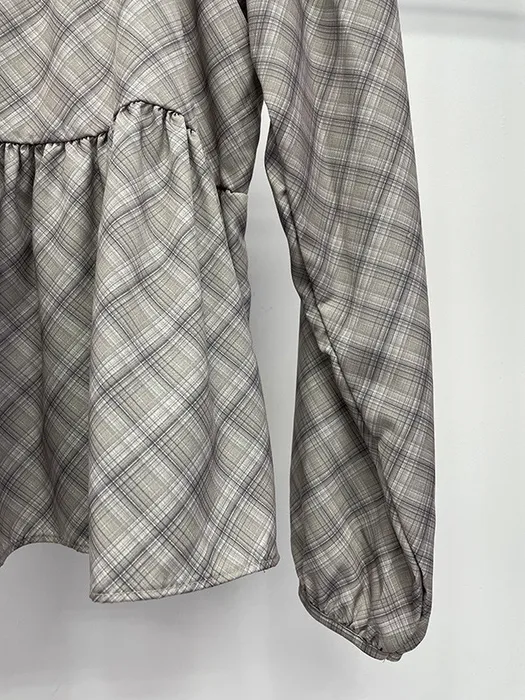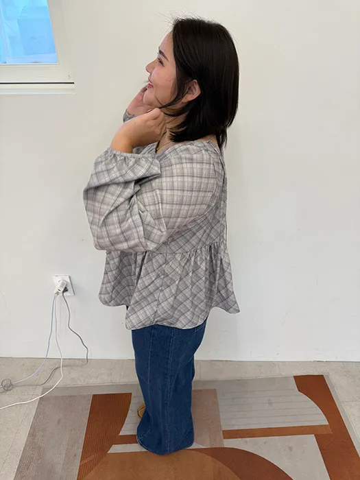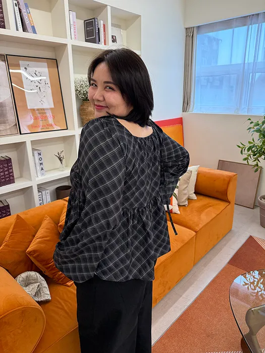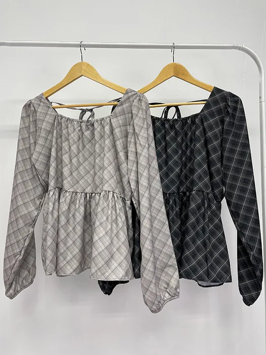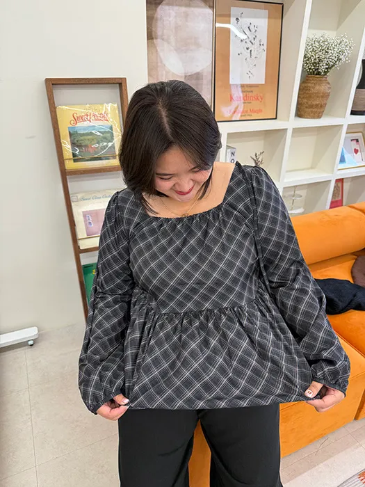 [ 在台現貨 ] #O45[1.2.3 Size]格紋方領寬袖雪紡上衣
