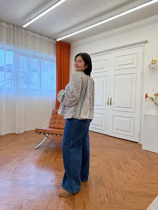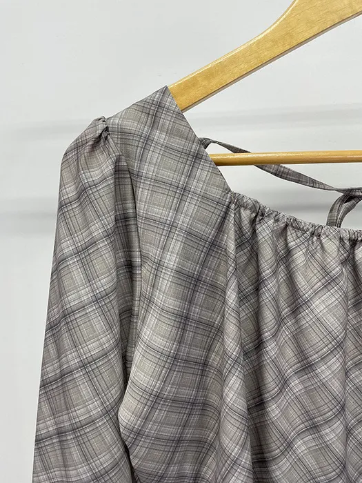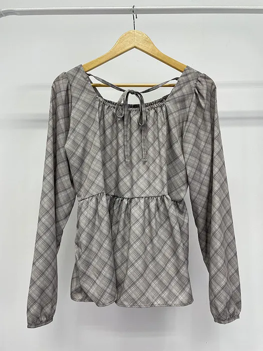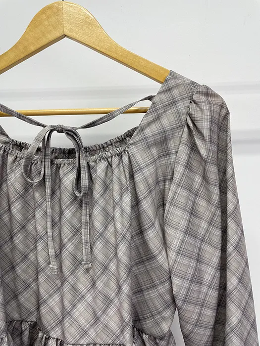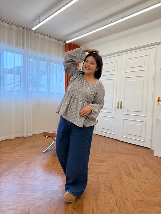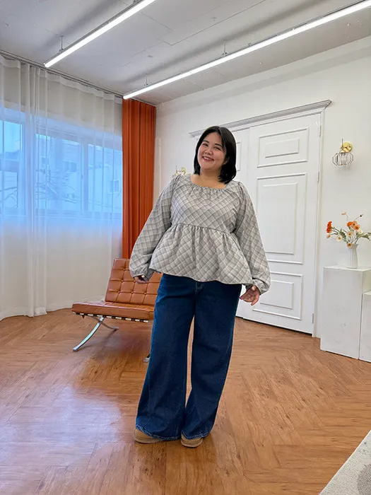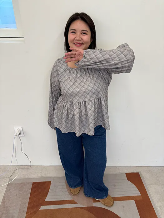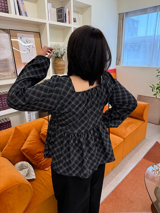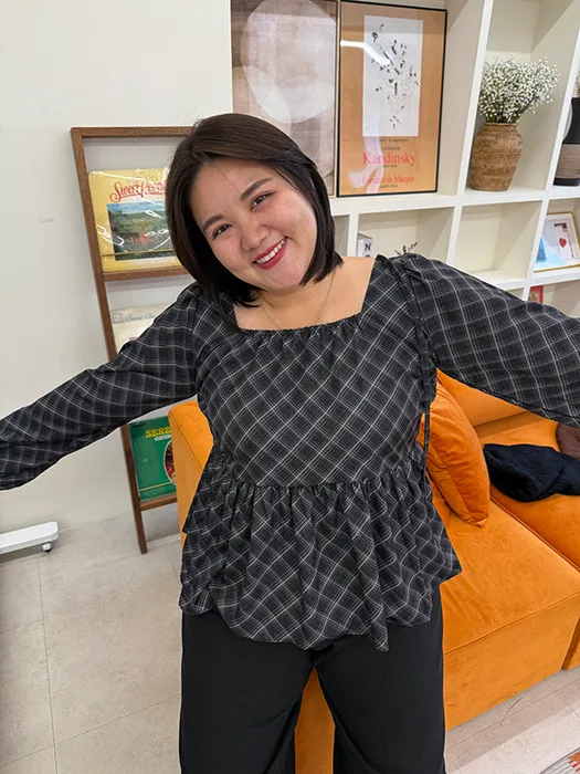 [ 在台現貨 ] #O45[1.2.3 Size]格紋方領寬袖雪紡上衣