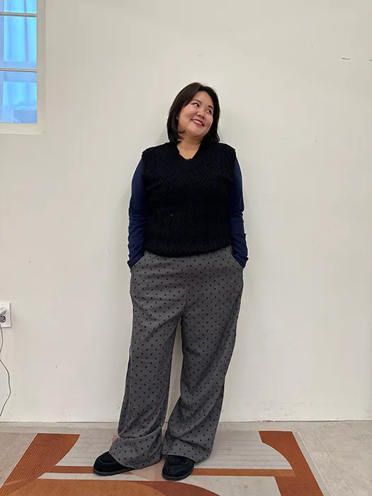 [ 在台現貨 ] #O47[1.2 Size]褲腳抽繩點點寬褲