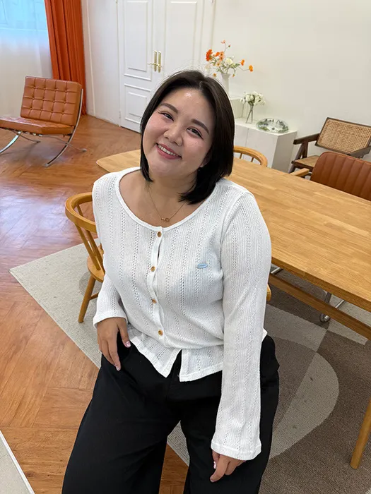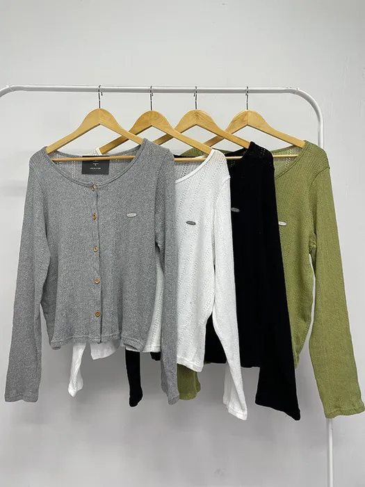 [ 在台現貨 ] #O51[1.2 Size]金屬小標薄針織排釦上衣