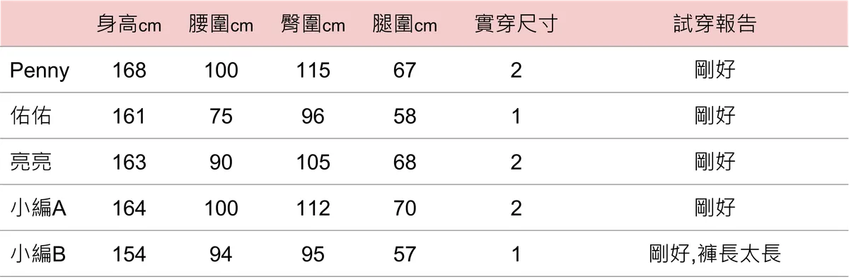 | 尺寸(cm) | 腰圍 | 臀圍 | 大腿圍 | 褲管圍 | 前褲襠 | 後褲襠 | 總長 |