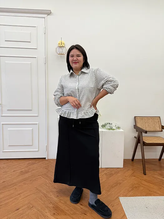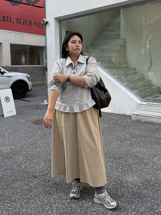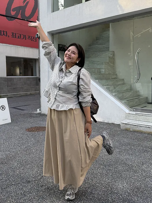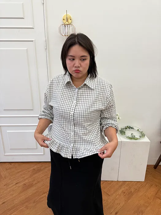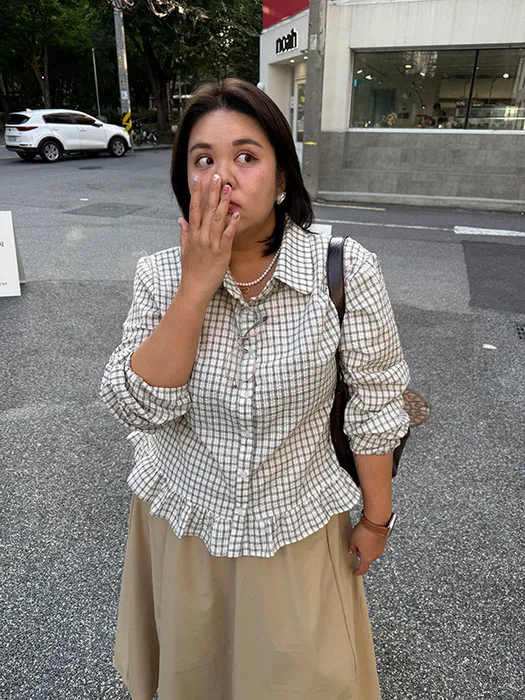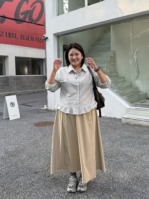 [ 在台現貨 ] #O56[1.2 Size]薄料格紋小傘擺襯衫