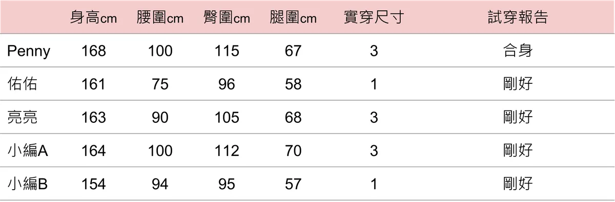 | 尺寸(cm) | 腰圍 | 臀圍 | 大腿圍 | 前褲襠 | 後褲檔 | 總長 | 裙子下擺圍 | 裙子總長 |