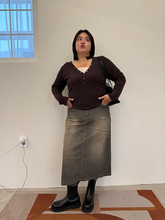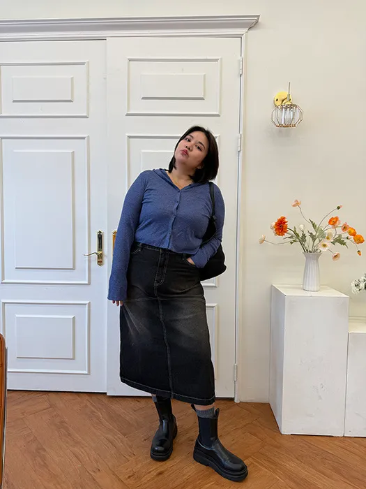 [ 在台現貨 ] #O79[S-3XL]無彈性挺料牛仔A字長裙24