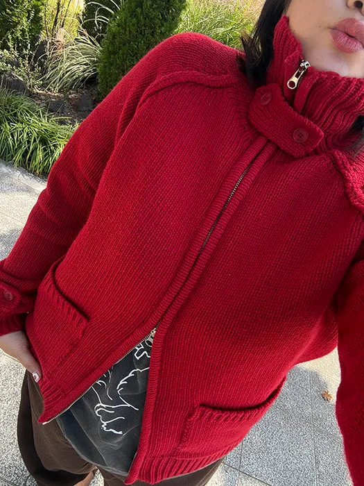#N13[FREE]重磅立領雙拉鍊針織外套(小香偶膩)(20% OFF)