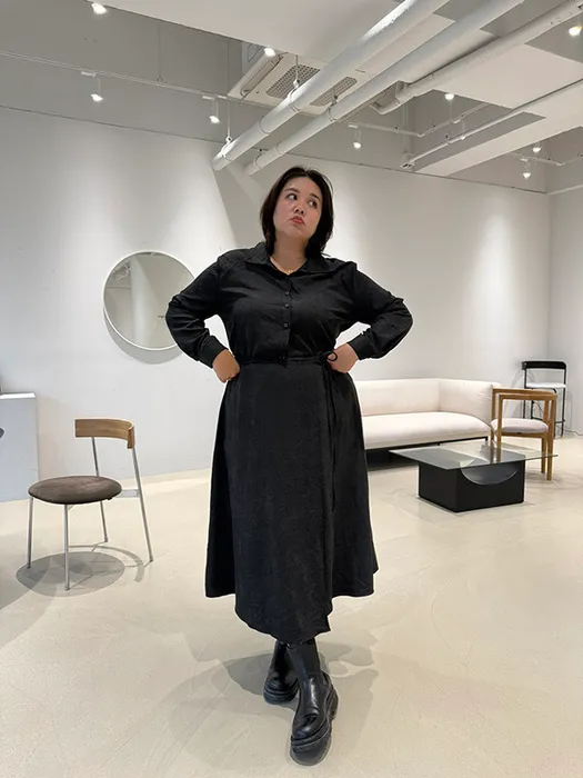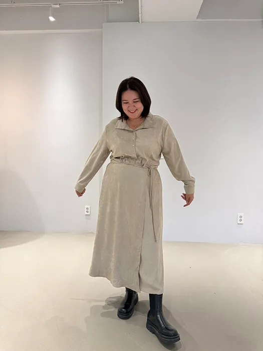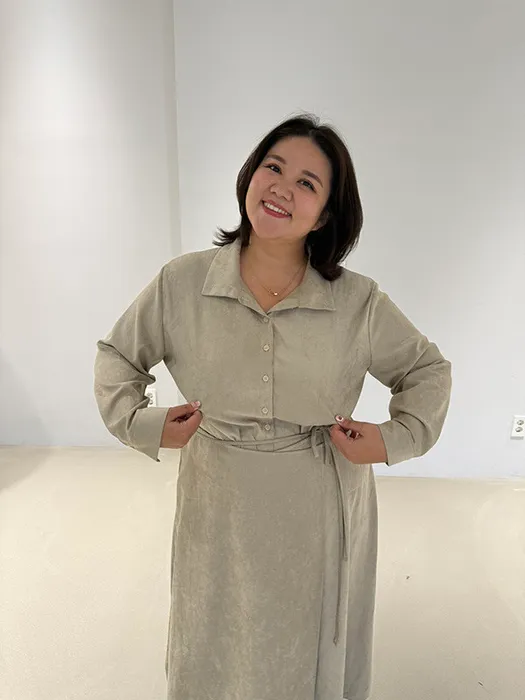 #N23[1.2 Size]片裙綁帶襯衫長洋裝