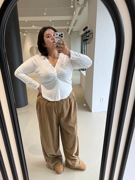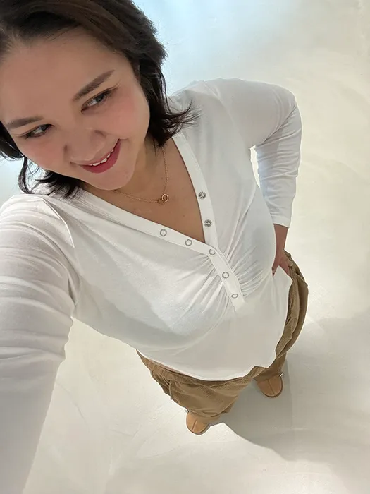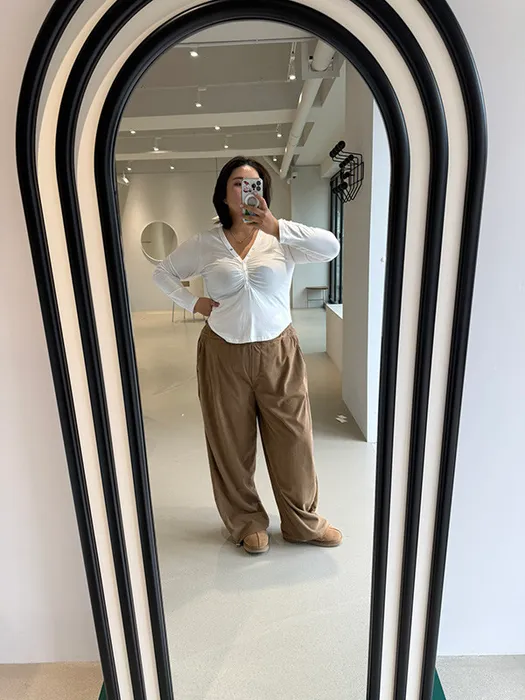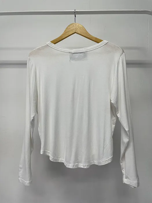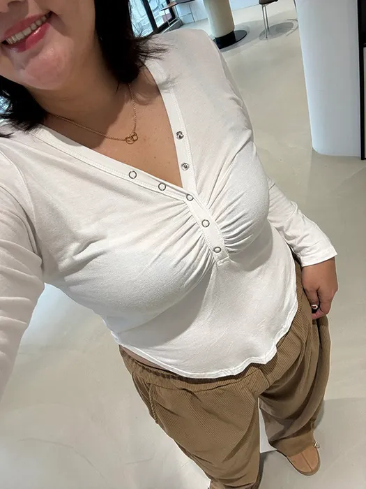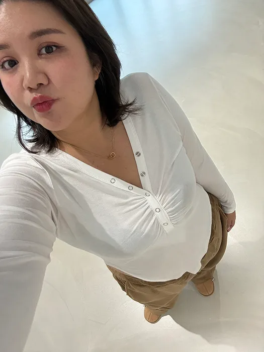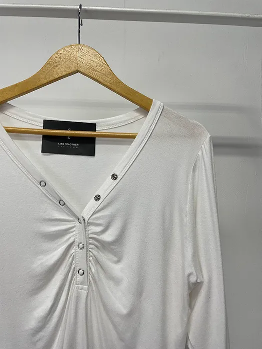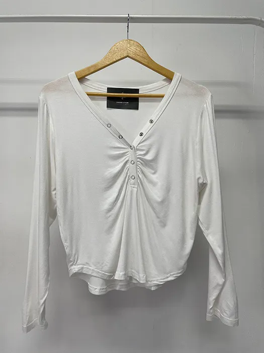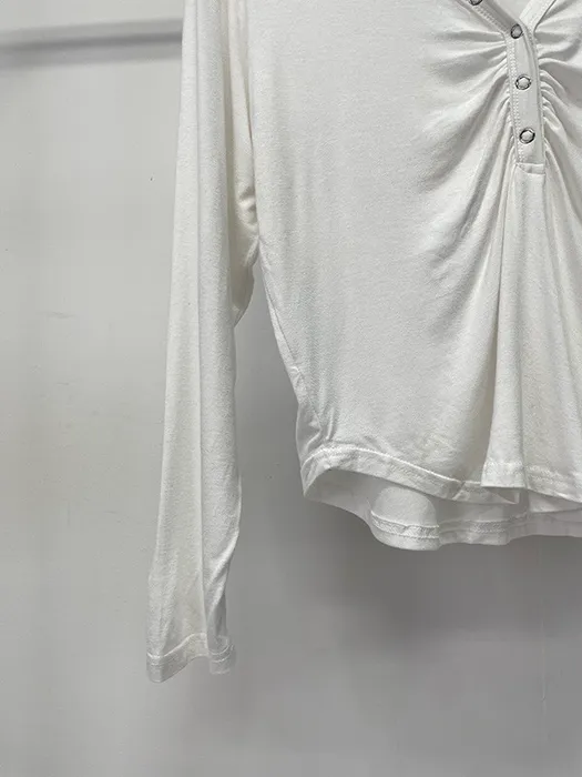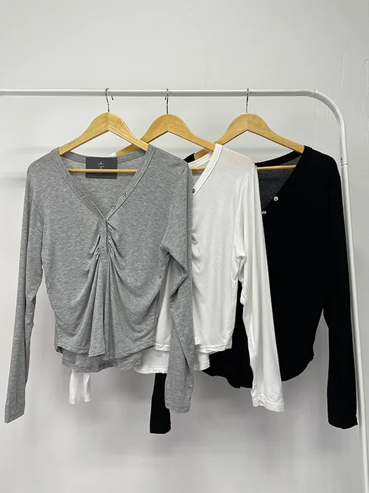 #N25[1.2 Size]V領排扣胸前抓皺薄長袖