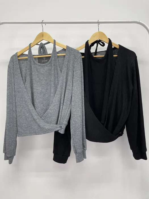 #N45[1.2 Size]疊搭感薄毛呢料假兩件上衣