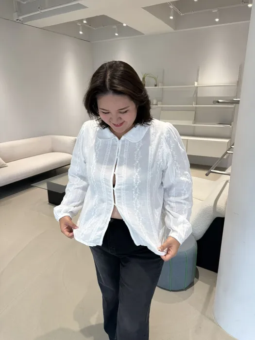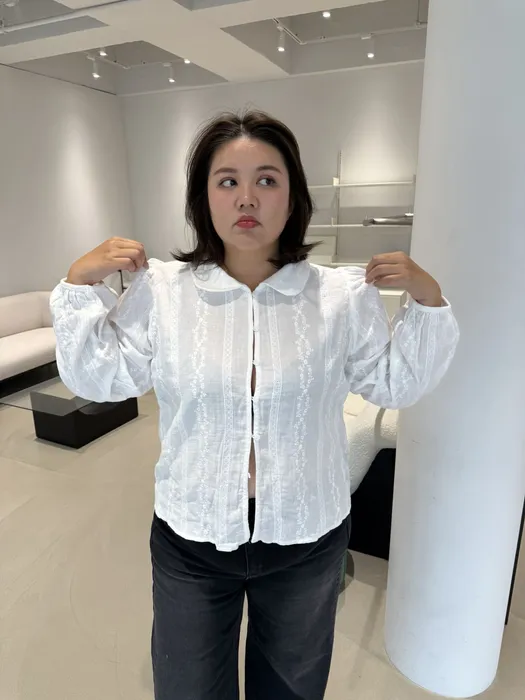 #N47[1.2 Size]公主感圓領蕾絲燒花上衣