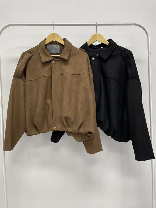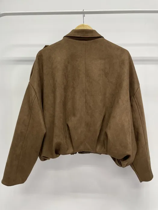 #N54[1.2 Size]短版軟料麂皮抓皺下擺夾克