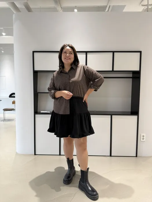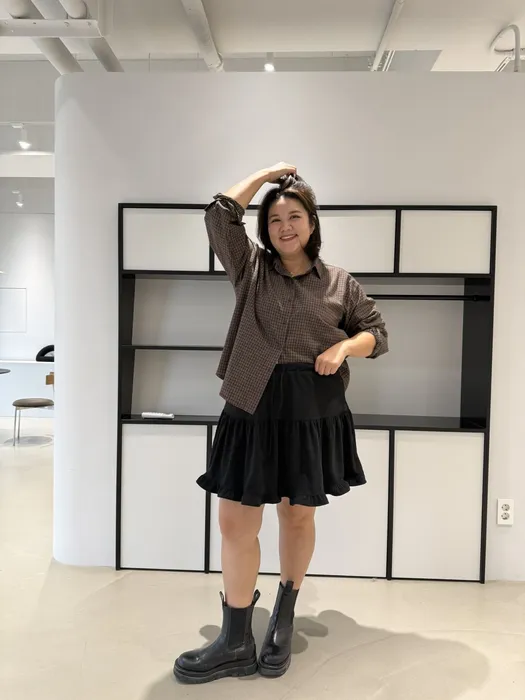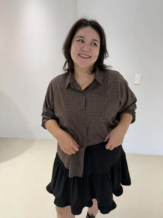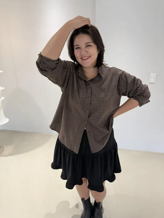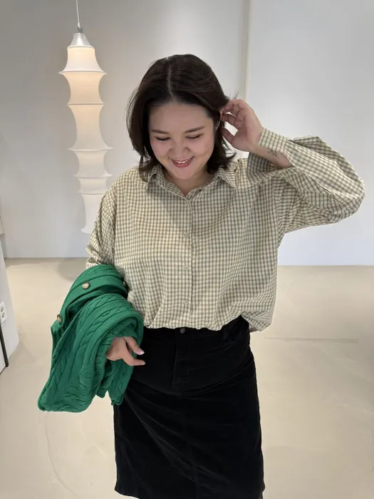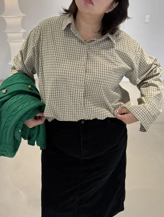 #N58[1.2 Size]細格紋薄料短版襯衫