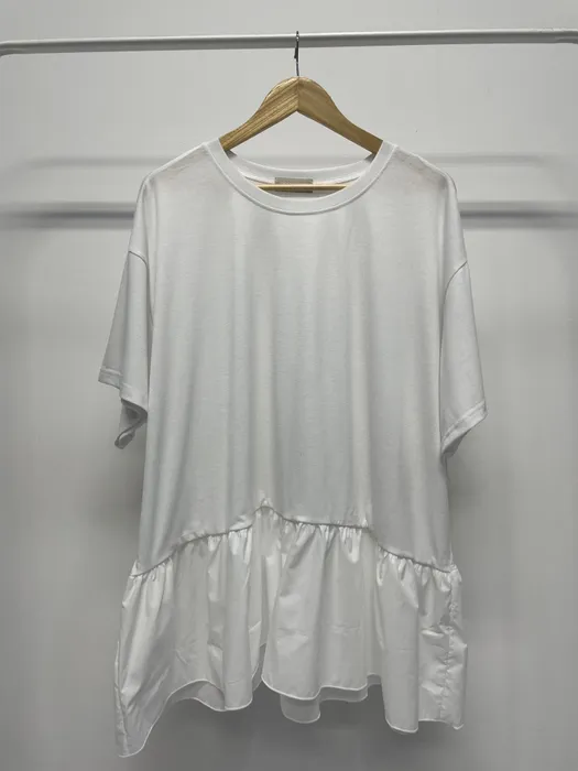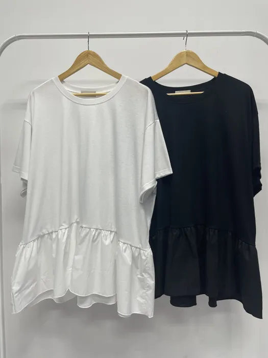 #N83[FREE]LNO Made異材質拼接小裙襬傘擺T(自訂款20% OFF)