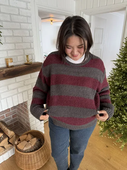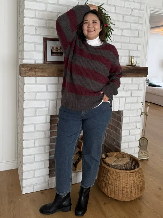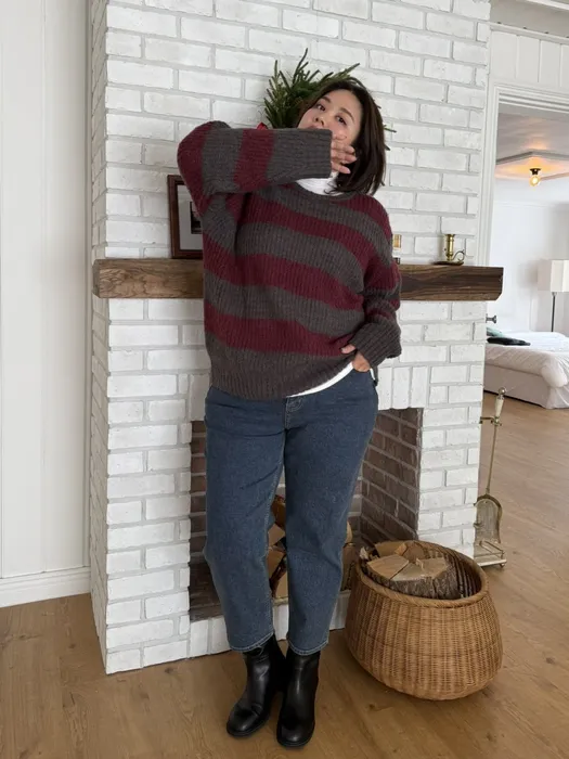 #D01[FREE]軟綿綿寬版條紋毛衣(馬海毛45%羊毛25%)(小香偶膩)