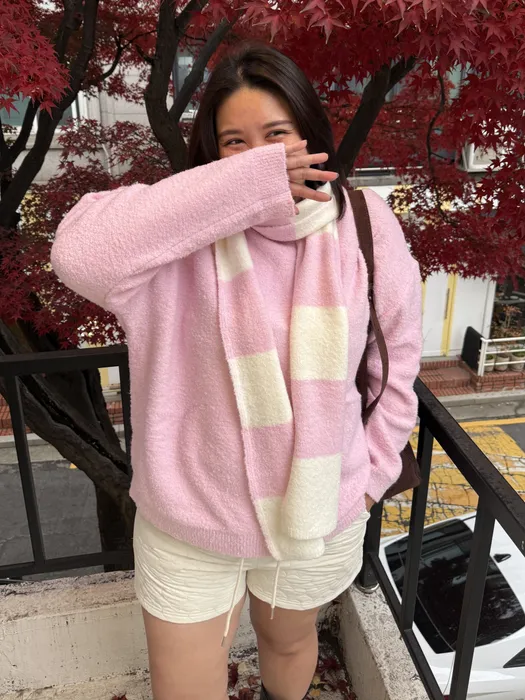 #D04搭配糖果色調寬長版毛衣的圍巾(小香偶膩)