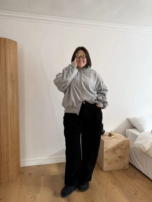 #D32[FREE]軟綿綿雙頭拉鍊寬連帽外套