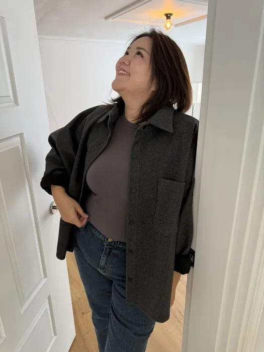 #D34[FREE]闆娘最愛墊肩毛呢短袖