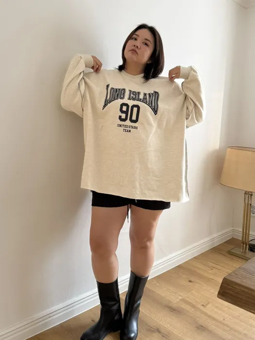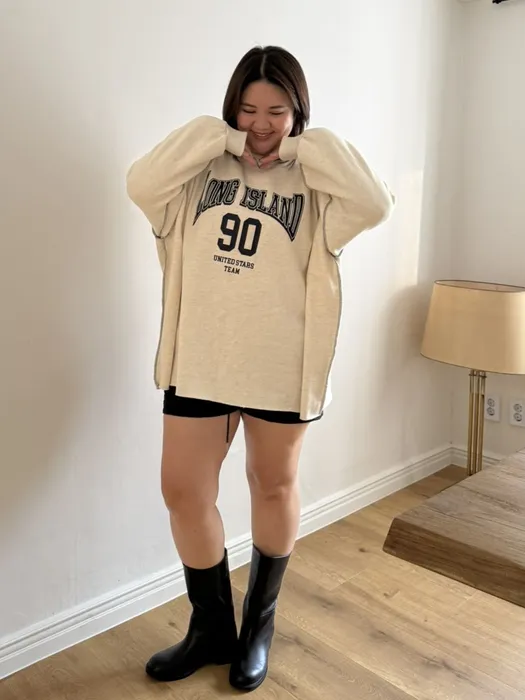 #D35[FREE]日常必備懶豬豬寬長版大學T(洋裝)