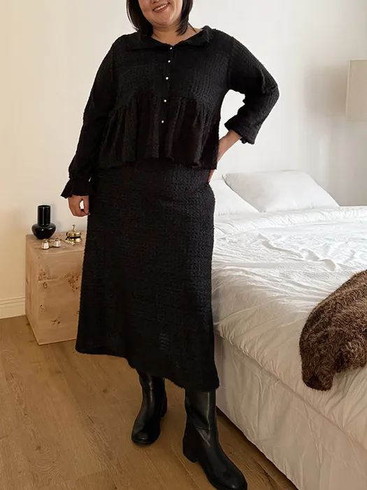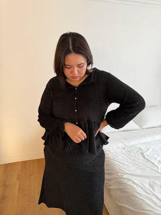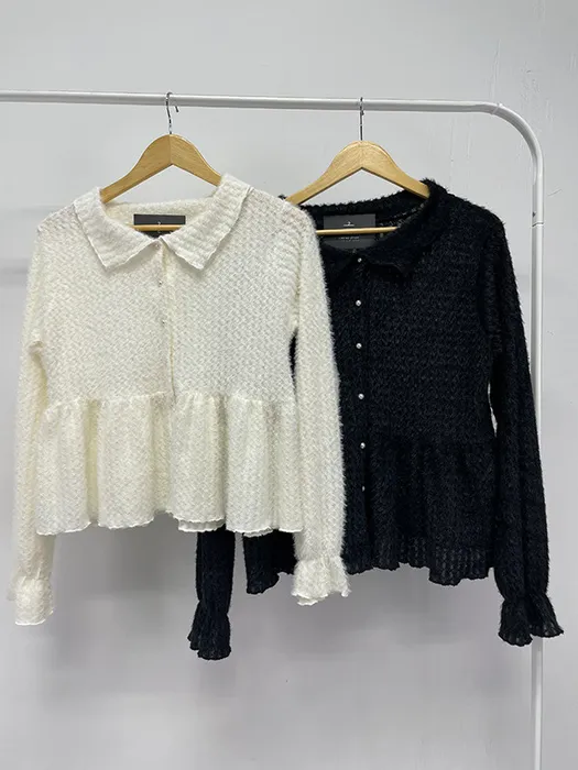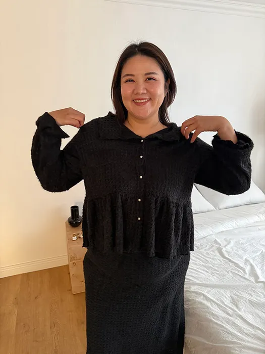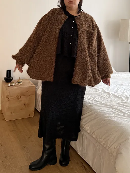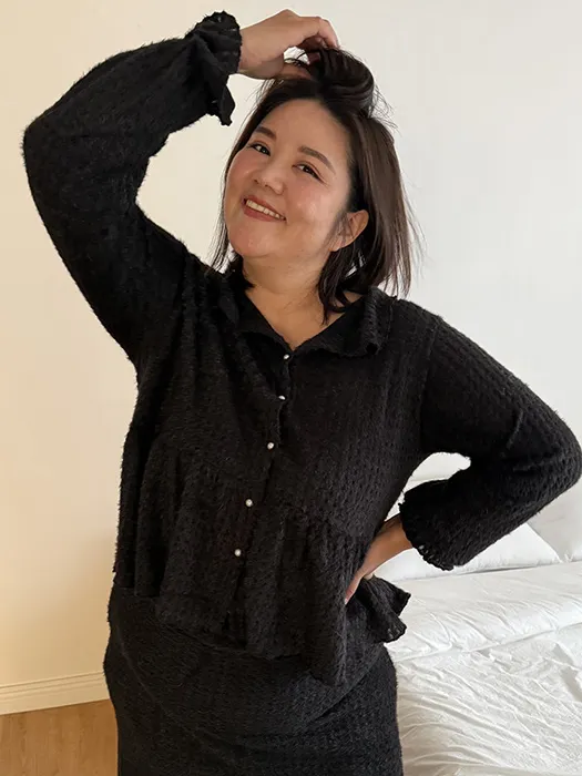 #D44[1.2 Size]珍珠排釦毛毛傘擺上衣