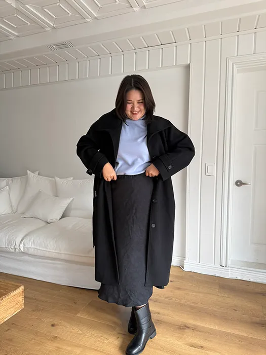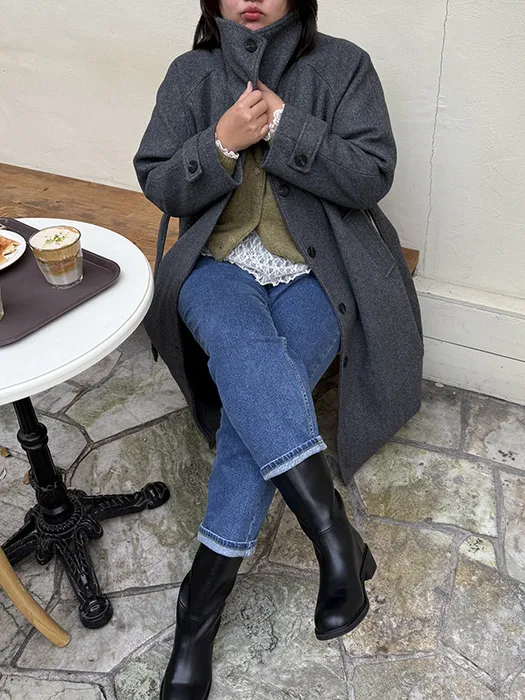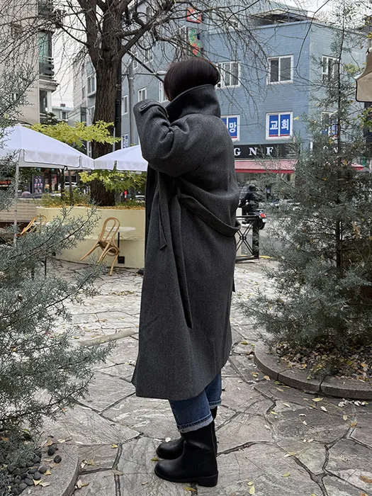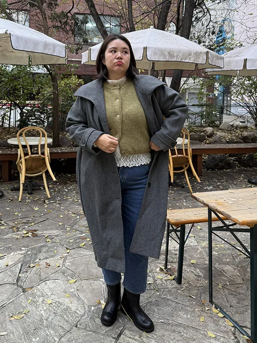 #D54[1.2 Size]俐落寬立領排釦長大衣