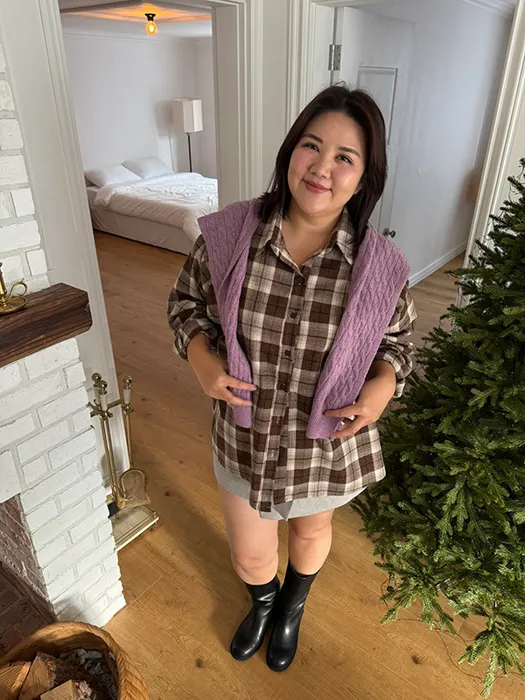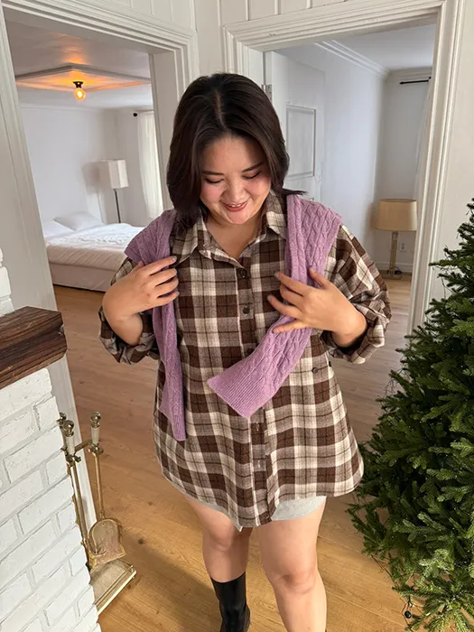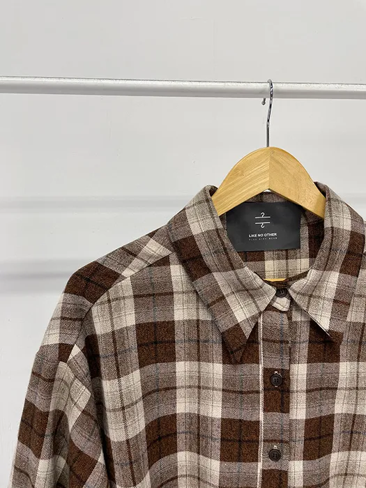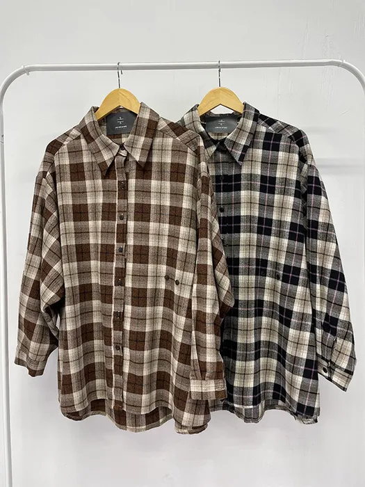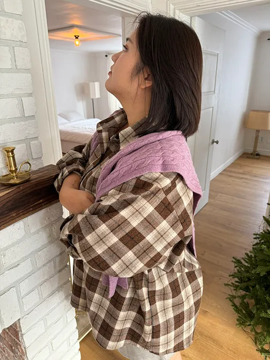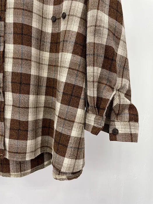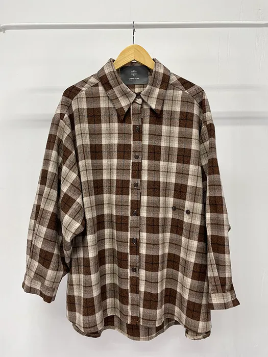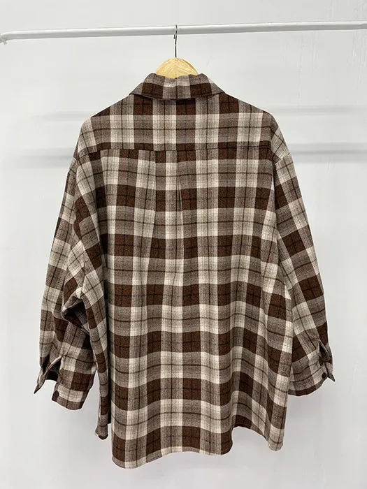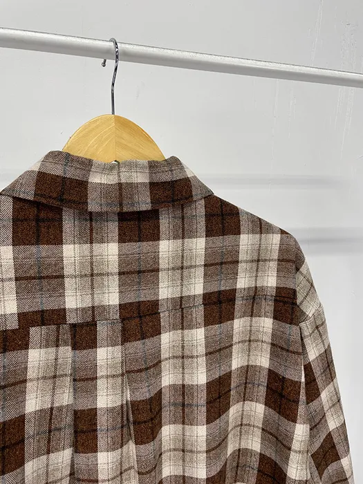 #D63[FREE]毛呢軟料格紋寬襯衫