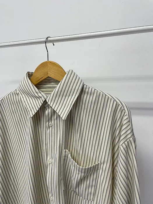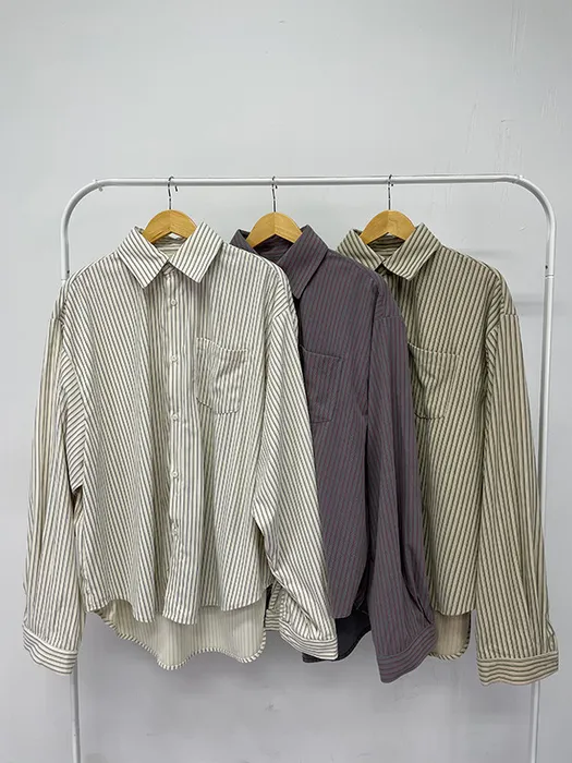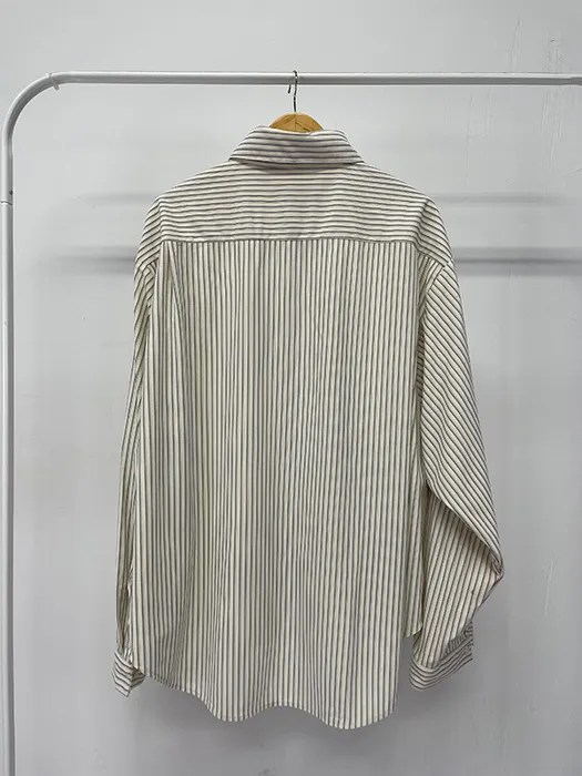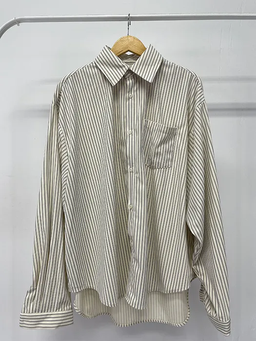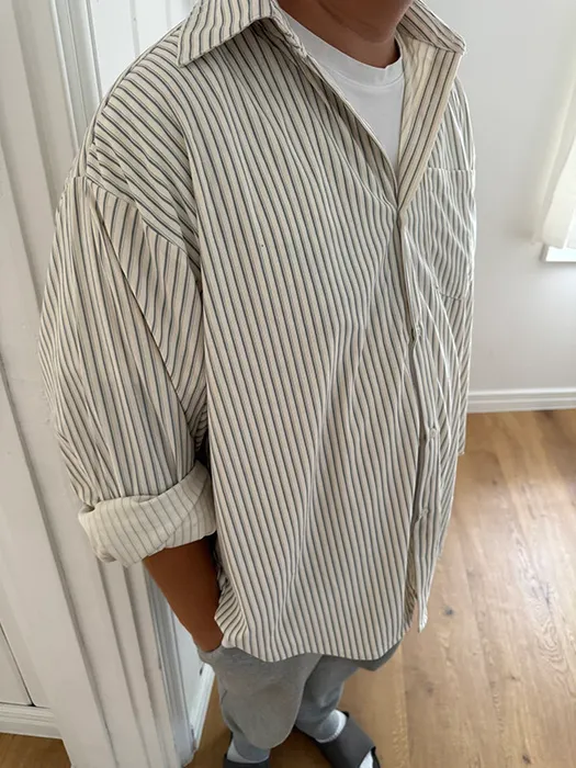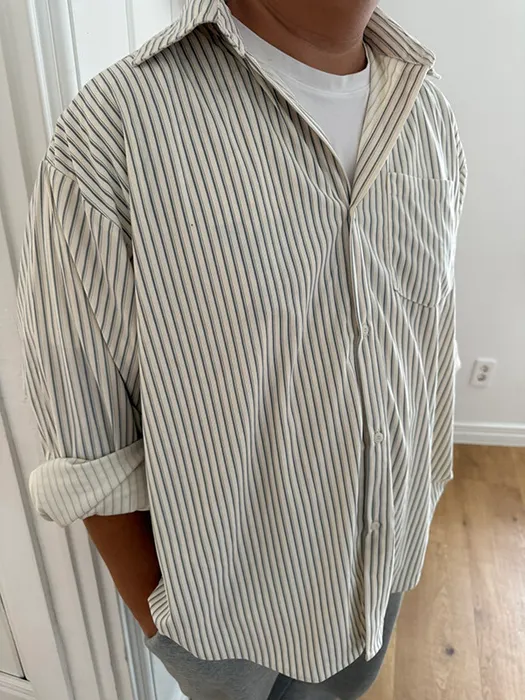 #D70[男裝部男女共著]厚磅over size絨面細條紋襯衫