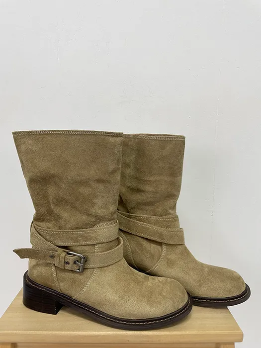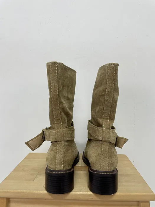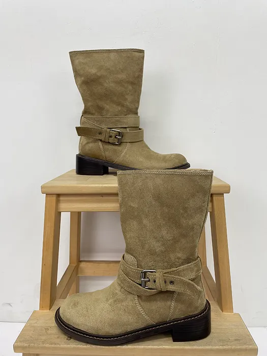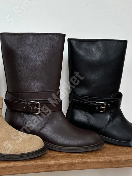 #D82[23cm-25.5cm]皮帶環可拆的中長靴10
