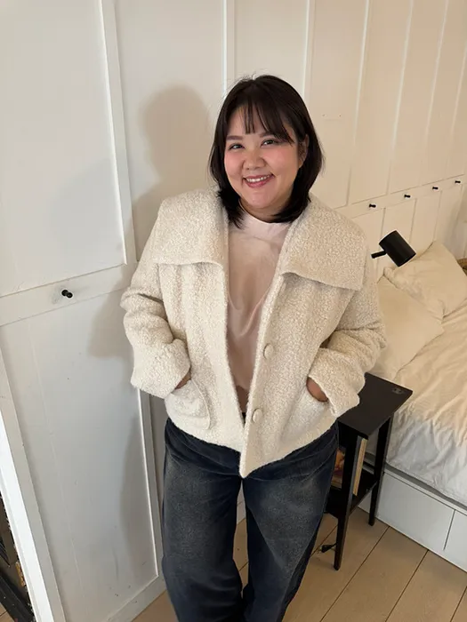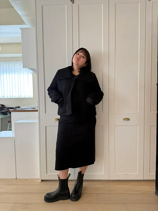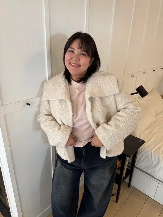 [ 在台現貨 ]#26J34[1.2 Size]大片領短版毛毛翻領夾克