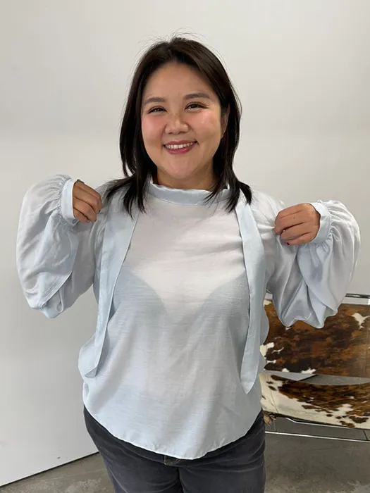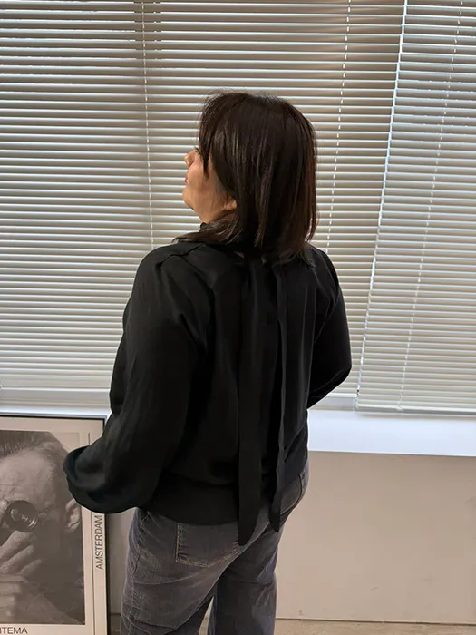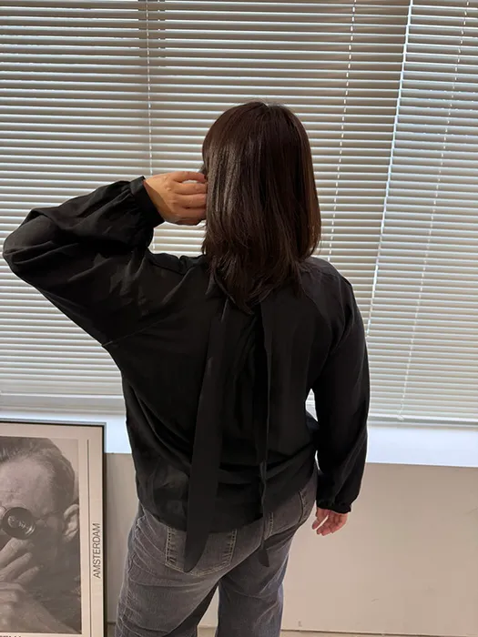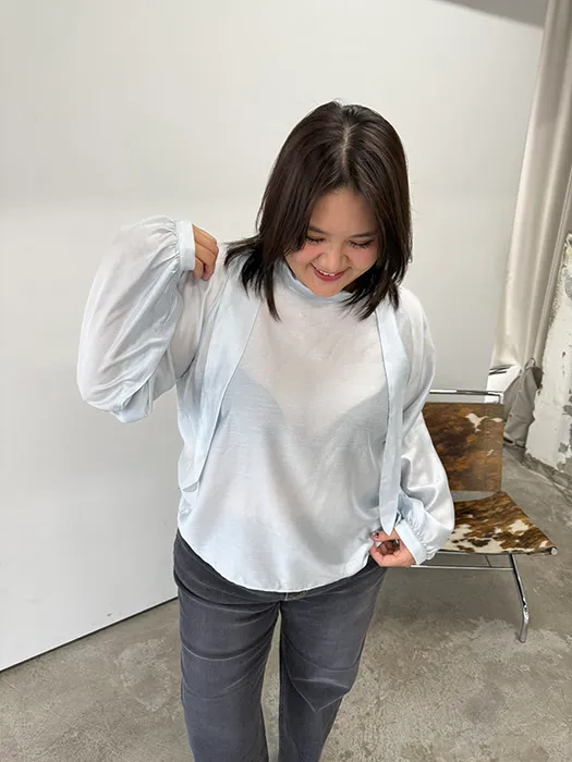 [ 在台現貨 ]#26F09[1.2 Size]小綁帶光澤感軟料雪紡上衣